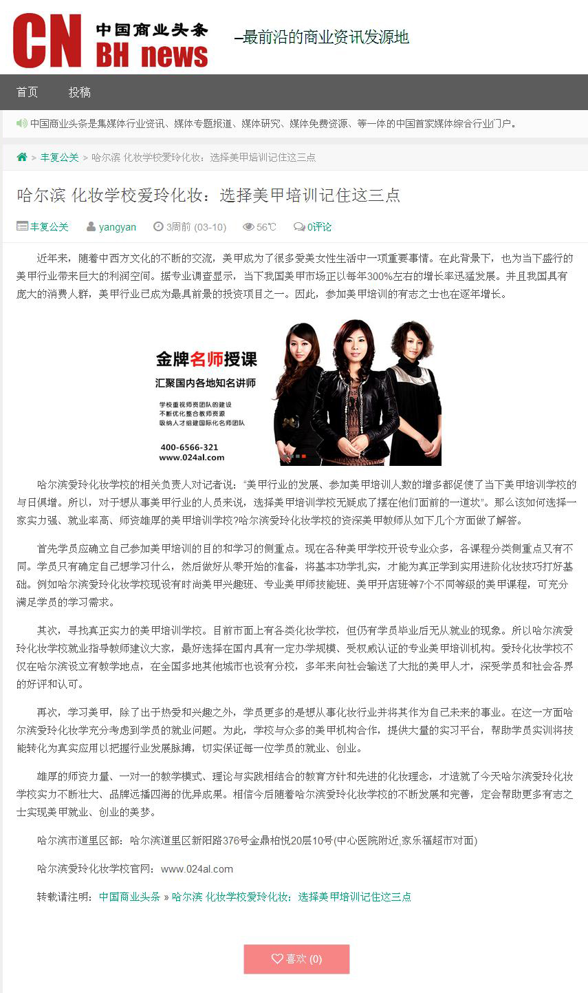 :沈阳爱玲化妆学校 创业人对美甲店趋之若鹜的背后