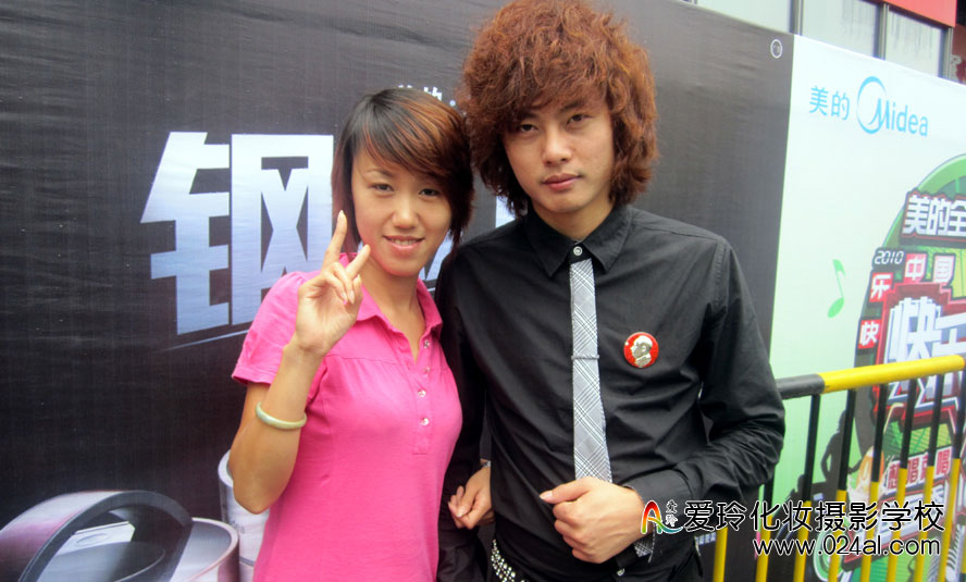 开春,湖南卫视、天娱传媒又一次蓄势待发所举办的新一届“快乐男声”选秀比赛。2010年快乐中国---沈阳赛区快乐男声10强歌迷见面会在万达广场隆重举行,本次活动为快乐男声的化妆造型由爱玲化妆学校赞助。活动当天一大早上就聚集了大量的歌迷等候着快乐男声的到来,我们到现场后台,学员按照选手的不同风格量身设计服装搭配及妆面造型。化妆结束后,学员们与选手近距离的合影留念。------这个夏天快乐男声用他们的声音打动无数人的心。