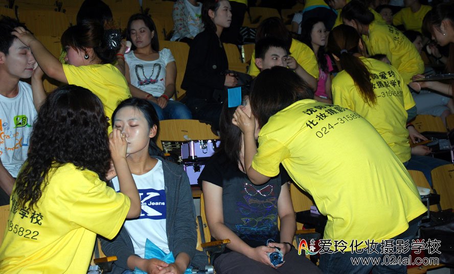 爱玲化妆学校学员去实践参加药科大学举办的迎新晚会活动----同学们都拿出了饱满的热情迎接新学弟学妹们的到来,并准备了丰富多彩的迎新节目演出。作为每年学校最盛大的活动之一,药科大学特邀爱玲化妆学校学员们前去为表演者化妆造型。活动当天天气很热,学员们在学校的大教室里为表演者化妆,教室里很闷,但学员们不曾把累挂在嘴边。爱玲学员经常会参加各大类型学院的实践活动,他们拎着重重的化妆箱跟赶场一样,说不定哪天你会在某个地方看到我们爱玲的学员正在为其他人化妆,他们也在为自己从事的职业道路上而努力着。